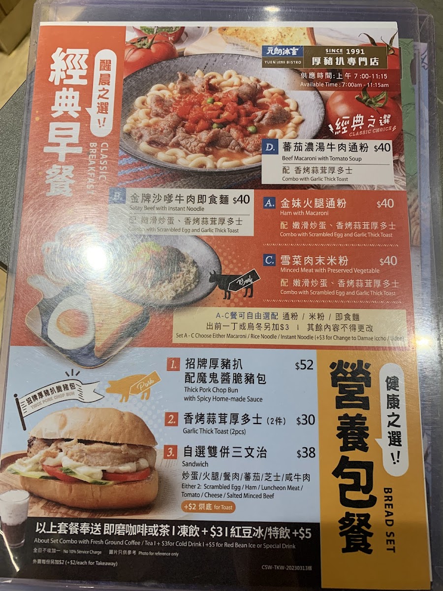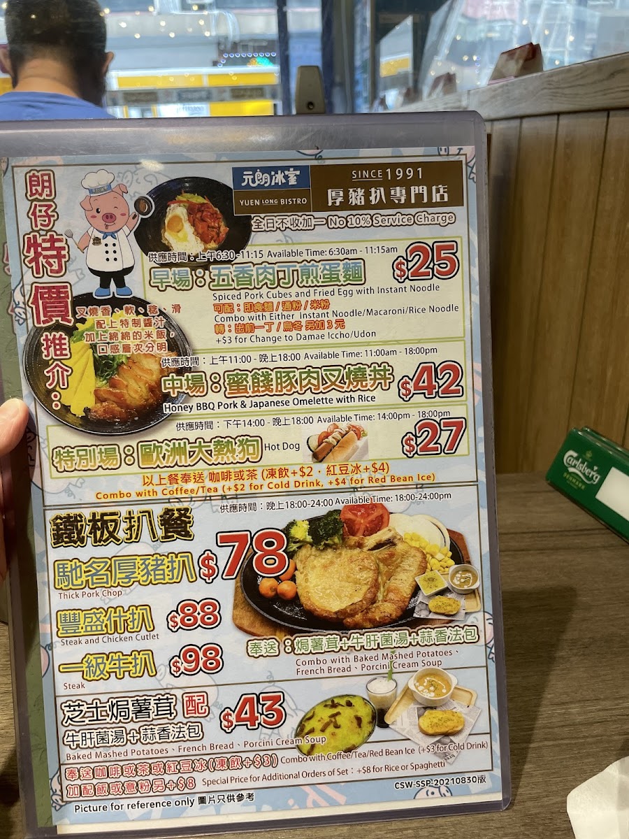 Welcome to Yuen Long Bistro, a delightful cha chaan teng nestled in Cheung Sha Wan, Hong Kong. This vibrant eatery beautifully blends traditional Chinese charm with a modern flair, creating an inviting atmosphere for all. Renowned for their thick, juicy pork chops, each dish bursts with flavor, especially when paired with their signature sweet soy dipping sauce. Guests rave about the affordable prices and generous portions, making it an ideal spot for breakfast or dinner.